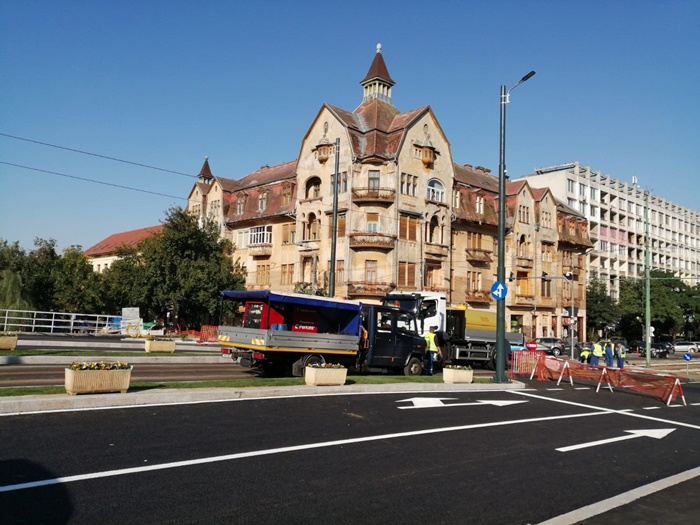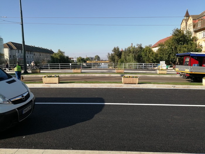 In acest sfarsit de saptamana s-au facut ultimele lucrari pentru ca podul sa poata fi dat in folosinta. A fost turnat stratul final de asfalt, s-au facut marcajele, au fost montate rulourile de gazon care marginesc calea de rulare a tramvaielor si au fost puse mai multe jardiniere cu flori.