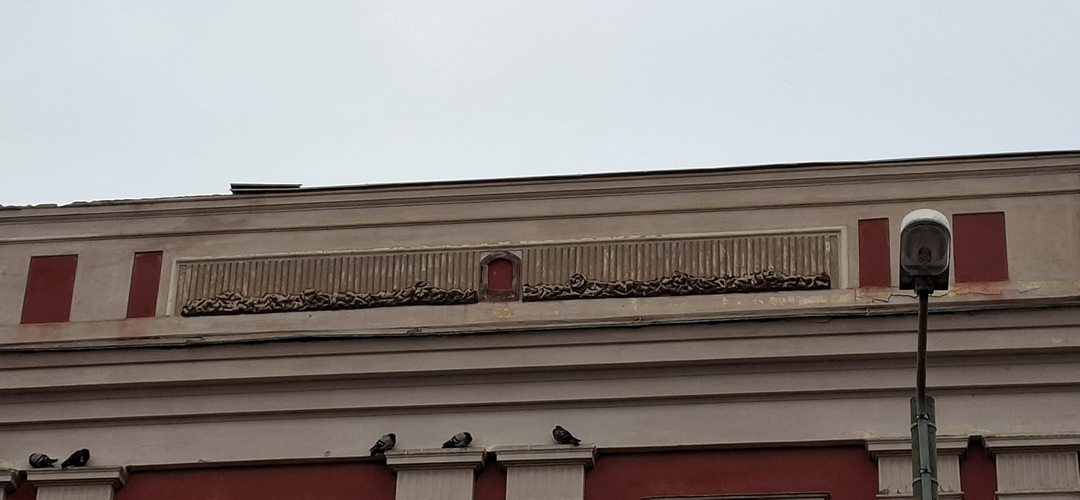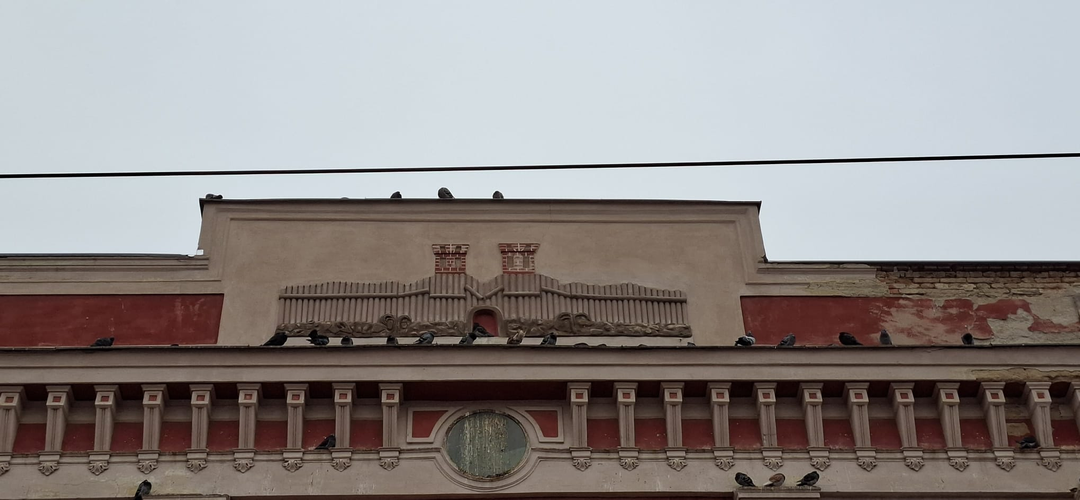 „Pe frontispiciul clădirii se afla reprezentată stema orașului, amintind de starea lui anterioară, pe când era o palancă. Inscripția suna astfel: