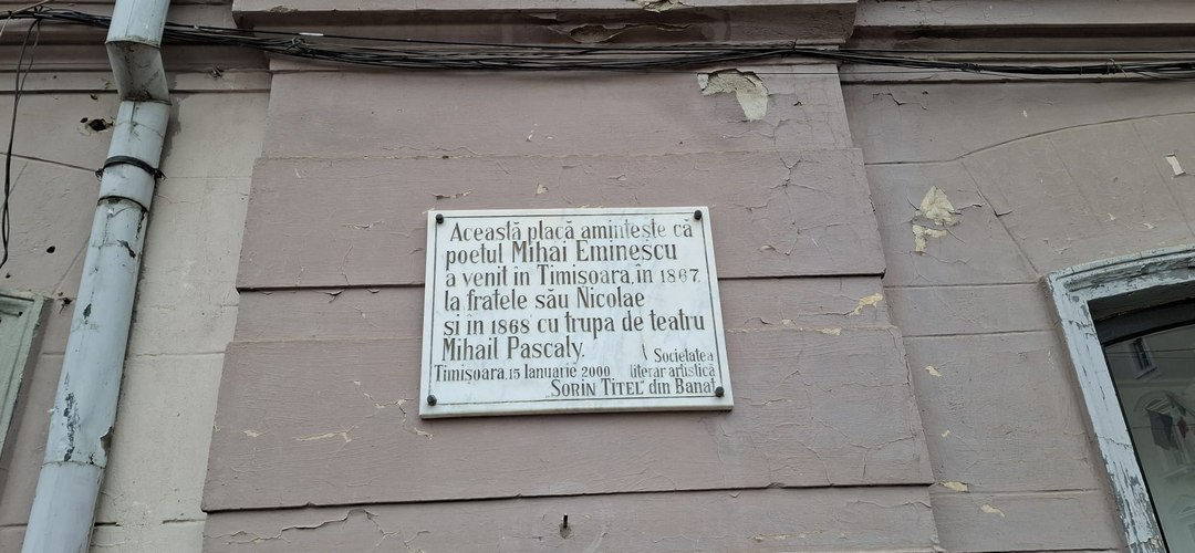 Pe clădire este de asemenea amplasată o plachetă care le reamintește timișorenilor că în 1867 și 1868 poetul Mihai Eminescu a trecut prin Timișoara. O dată în căutarea fratelui său Nicolae, iar a doua oară cu trupa de teatru a lui Mihail Pascaly. Placheta a fost așezata în urmă cu peste 20 de ani de către Societatea literar-artistică Sorin Titel din Banat.
