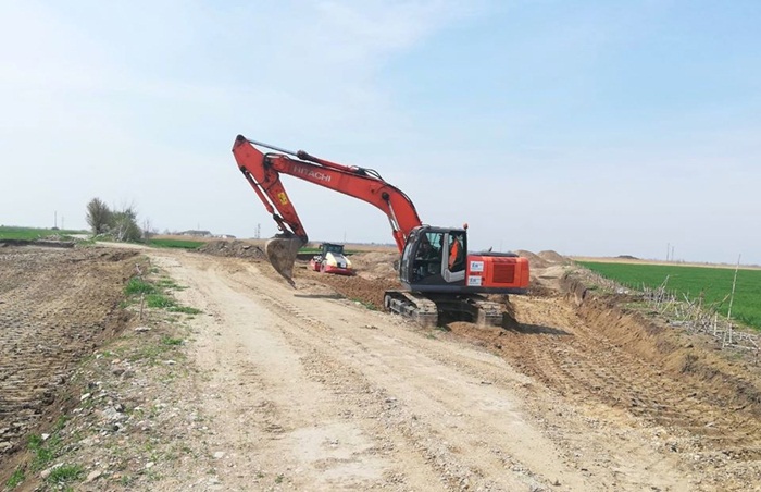 In zona DN 59 (Sag), se realizeaza completarea, profilarea si nivelarea suprafetelor in urma descarcarilor arheologice care au fost finalizate.