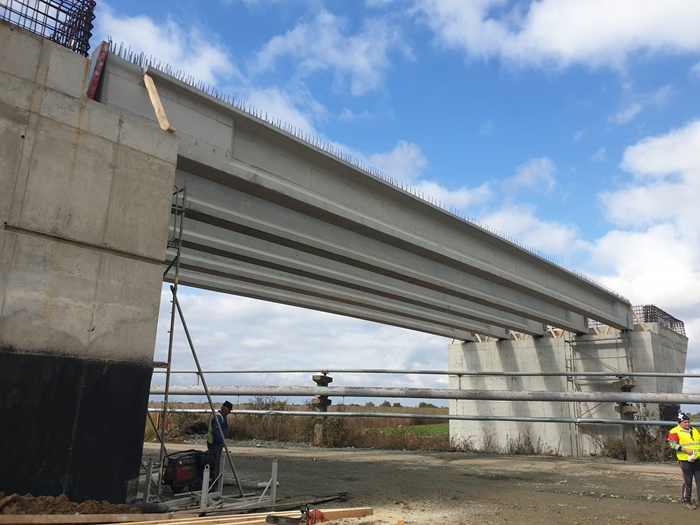 “Saptamana aceasta, pe santierul variantei de ocolire Timisoara Sud s-au montat cele cinci grinzi la al doilea pasaj, de data aceasta în zona localitatii Mosnita Noua, în apropiere de DJ 592. Este un pasaj peste un canal al ANIF, primele elemente de suprastructura fiind amplasate in urma cu doua saptamani, in zona Freidorf“, transmit reprezentantii Directiei Regionale de Drumuri si Poduri Timisoara.