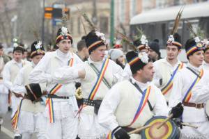 TIMISOARA. Masti, capre, dubasi, bice, clopotei, tobe si talangi! Zarva mare la Timisoara! Sute de tineri din tot judetul Timis, reprezentand traditii vechi de secole, au venit astazi in Timisoara sa colinde.