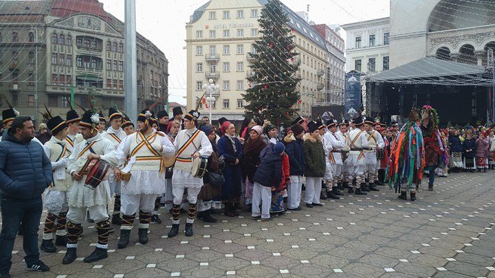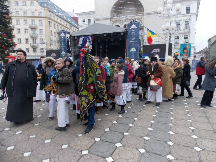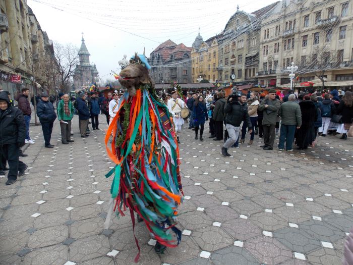 TIMISOARA. Masti, capre, dubasi, bice, clopotei, tobe si talangi! Zarva mare la Timisoara, luni dimineata, cand sute de tineri din tot judetul Timis, reprezentand traditii vechi de secole, au venit sa colinde.