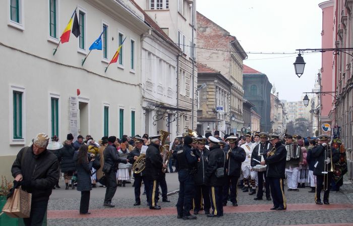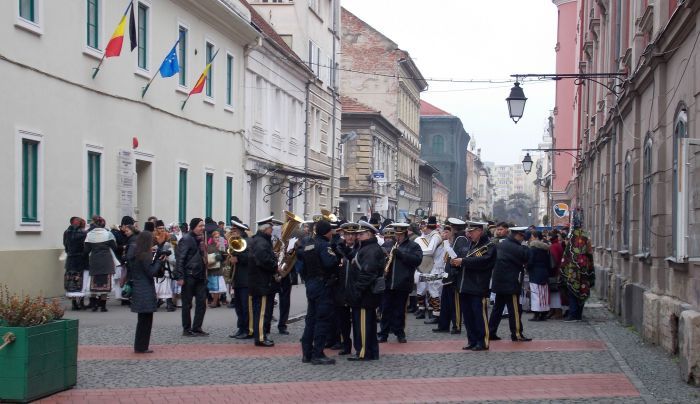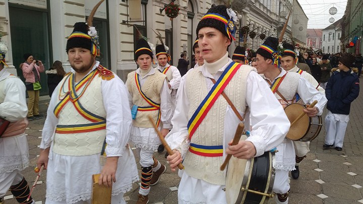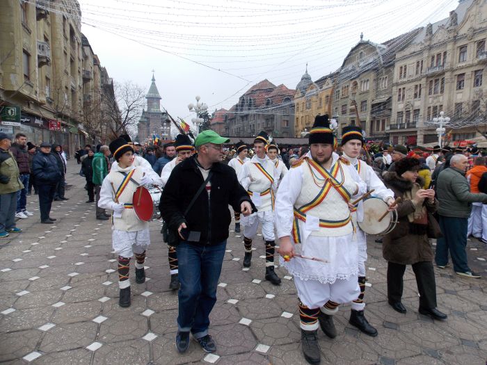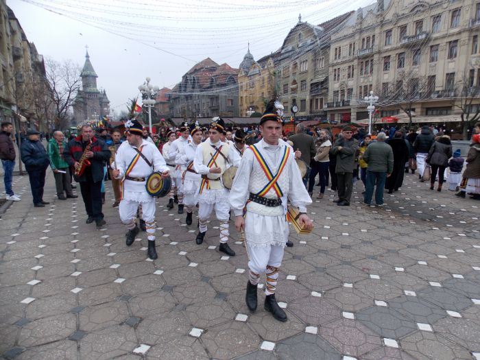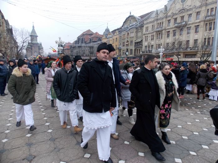 Imbracati in straie traditionale de sarbatoare, au cantat si au dansat pe strazi spre bucuria timisorenilor care an de an ii primesc cu bratele deschise.