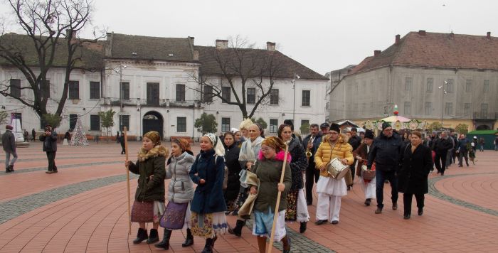 Batuta cu dubele, jocul caprei, colinde de fecior si fata: sunt doar cateva dintre datinile ce dau farmec Alaiului colindatorilor, unul dintre cele mai asteptate evenimente ale fiecarei ierni si care si-n acest an a adus, cu urari de bine si belsug, peste 350 de colindatori din judetul Timis, Caras Severin si Torac, Serbia, pe strazile Timisoarei.