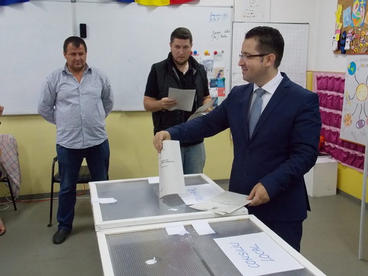 TIMISOARA, Alegeri Locale 2016. Marius Dugulescu, candidat la Primaria Timisoara din partea PMP, a votat in aceasta dimineata, in jurul orei 11.00 la sectia de la scoala Generala nr. 5, amenajata in zona Printul Turcesc. Aceasta dupa ce a fost impiedicat sa voteze la Scoala Generala 30 din Soarelui, unde se prezentase initial sa-si exprime optiunea electorala. Presedintele Sectiei de votare i-a explicat ca nu poate sa voteze la scoala 30, intrucat nu avea domiciliul in zona arondata. Asa ca, dupa o discutie cu regulamentul votarii in fata, Marius Dugulescu a inteles ca trebuie sa mearga sa voteze in alta parte.