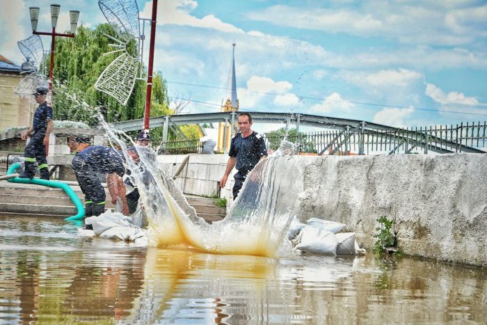 “În cursul dimineții, nivelul râului Timiș a depășit cota coronamentului digului aflat pe malul stâng, pe un sector aflat la circa 3 km în aval de localitatea Lugoj. În acest condiții, după trei ore, prin eroziune, s-au format două breșe (de circa 30 metri fiecare, situate la distanță de aprox.100 metri) prin care apa se scurge pe terenuri agricole, fără a fi inundate localități. Preventiv au fost evacuate doua ferme si s-a oprit alimentarea cu apă dintr-un cartier din municipiul Lugoj. Nu există riscul inundării zonelor locuite situate în aval. “, explica specialistii de la Apele Banat, care monitorizeaza situatia in zona.