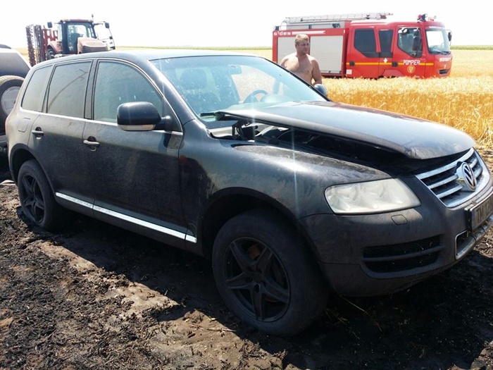De asemenea, un autoturism de teren a fost afectat de incendiu. Aceasta masina a fost folosita de proprietar care a incercat sa stinga incendiul, in faza initiala.