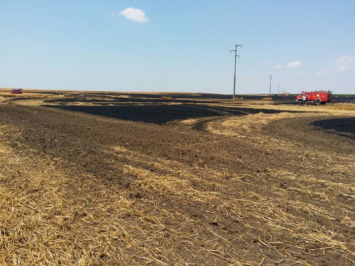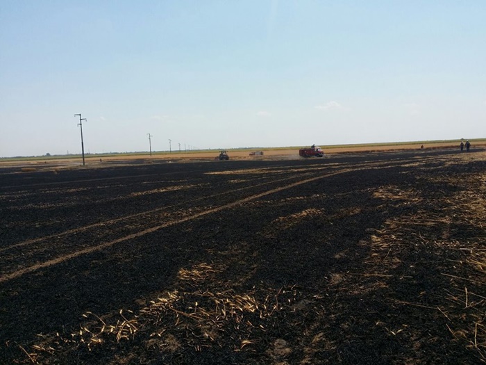 In urma incendiului au ars 12 hectare de teren de grau, care apartin unei societati comerciale.