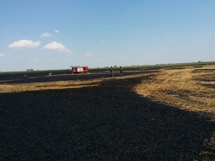 Pompierii din Timisoara au fost chemati sa intervina la stingerea unui incendiu izbucnit la un lan de grau, in comuna Sandra din judetul Timis. Alaturi de pompierii timisoreni au intervenit si colegii lor de la Sandra si Biled, dar si un tractor cu disc.