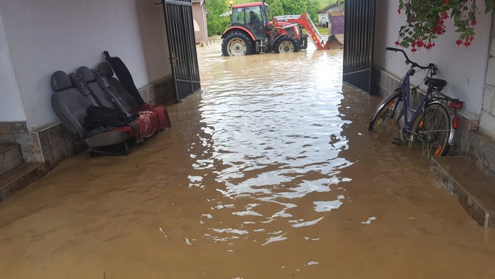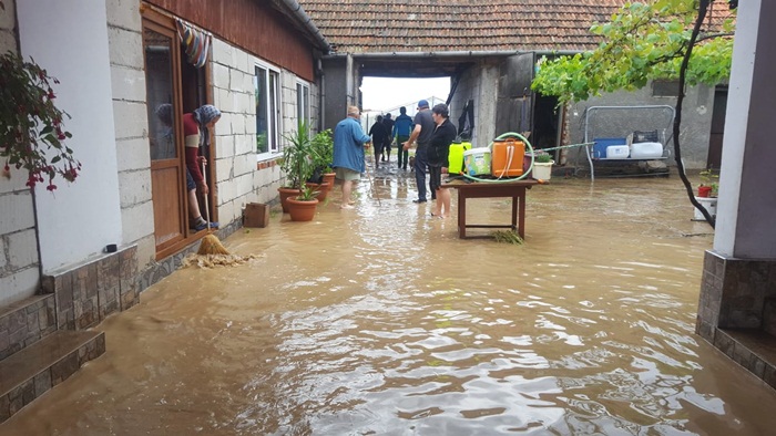Situatia este la fel de grava si la Cladova, unde apa a inundat strazile si curtile oamenilor si a patruns si in case.