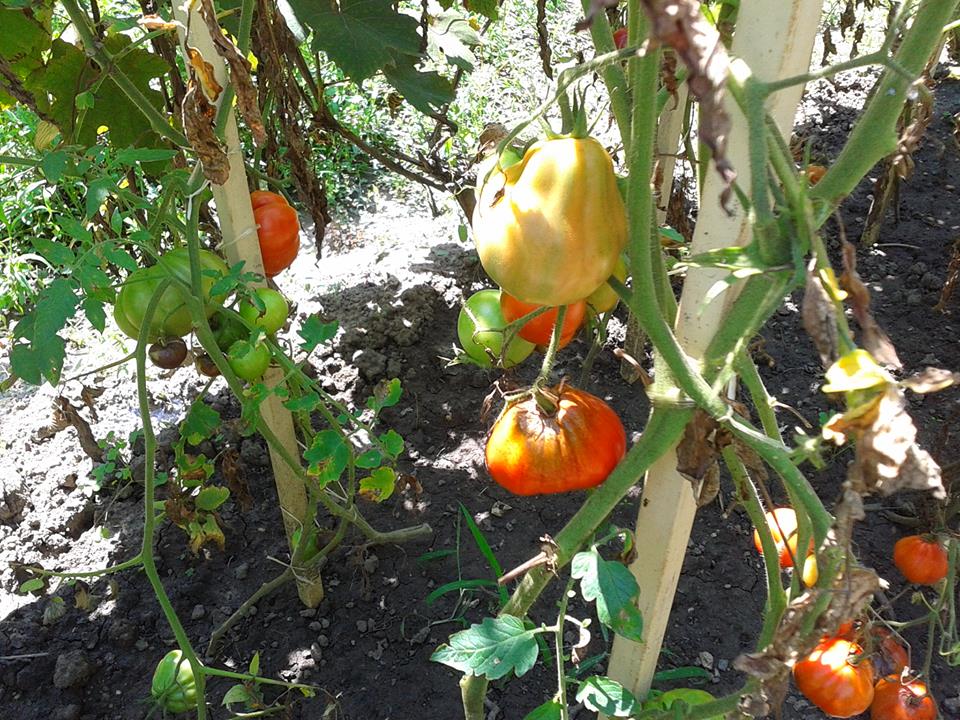 „Dupa cum vedeti, am rosii mari, frumoase, am rosii mari schilodite, am rosii mari cu zone stricate. Furnicile, tot felul de insecte, se urca pe tulpini, si le maninca. Sint stropite, dar degeaba !„ comenteaza la poza postata de ea o banateanca.