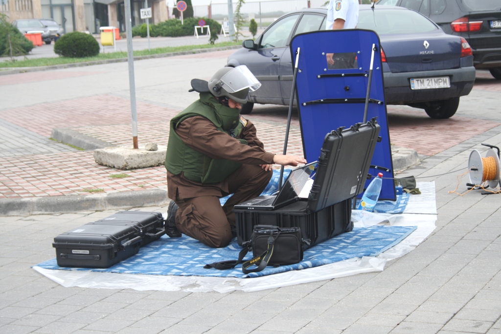 Scenariul a prevazut ca, in jurul orei 9.00, in timpul patrularii in parcarea auto, un agent de securitate a descoperit un obiect abandonat. Acesta a anuntat imediat specialistii din cadrul Directiei SRI a Judetului Timis care impreuna cu echipa de evaluare a amenintarii a constatat ca bagajul este suspect, deoarece nu avea nicio eticheta si nu putea fi identificat proprietarul, si in consecinta, exista posibilitatea sa contina explozibil.