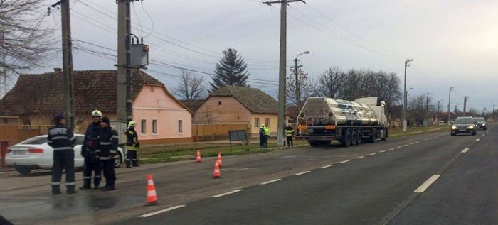 Accidentul s-a petrecut chiar la intrarea intr-o benzinarie din Sannicolau Mare.