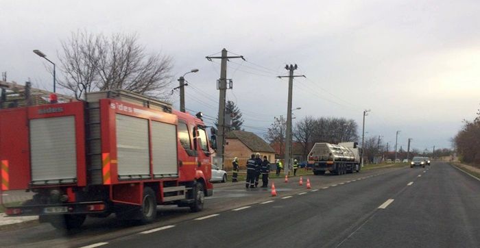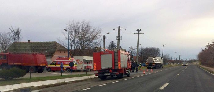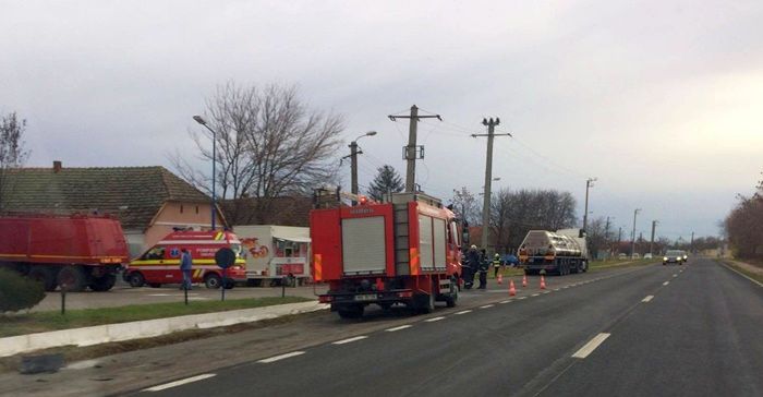 TIMIS. Accident luni dimineata pe soseaua ce leaga Timisoara de vama Cenad. Un autoturism si o cisterna s-au izbit, iar in urma impactului, masina a fost proiectata intr-un microbuz.