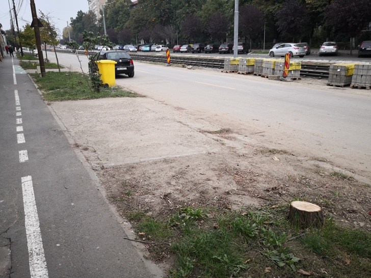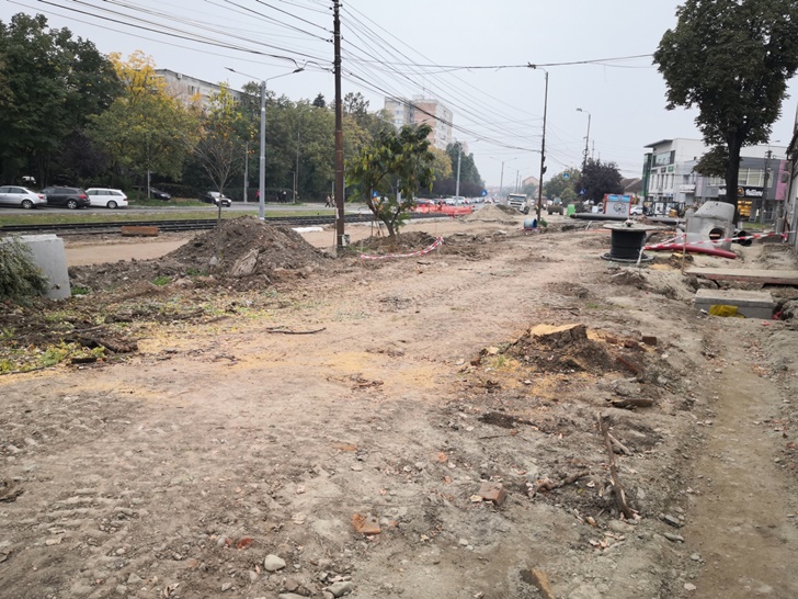 Cum liniile au fost deja montate pe aproape toata lungimea strazii, in ultima perioada s-au facut progrese la trotuarele de pe portiunea Torontalului – Matei Basarab si s-au finalizat instalatiile subterane de telecomunicatii. Au fost insa sacrificati alti copaci.