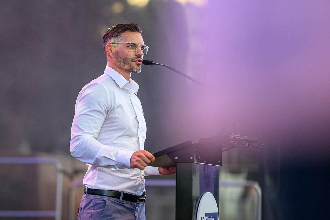 A urmat discursul primarului Timișoarei, Dominic Fritz, care le-a amintit absolvenților că, oriunde îi va purta viața, vor rămâne cu Politehnica și cu Timișoara, și-a exprimat speranța că spiritul Timișoarei – inovare, diversitate, libertate și excelență – și-a lăsat amprenta asupra lor, i-a invitat să devină ambasadori ai orașului, dar și căpitani ai propriilor vieți.