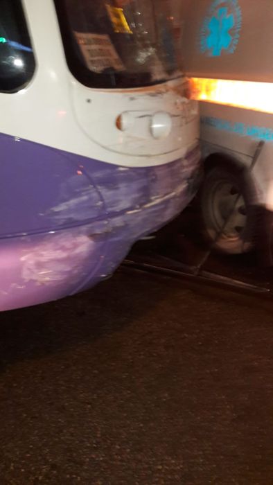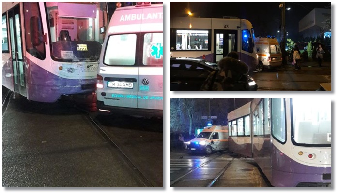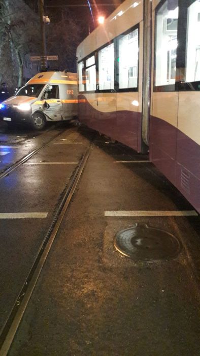 TIMISOARA. Impact puternic intre un tramvai si o ambulanta, vineri seara, la Timisoara. Totul s-a intamplat la intersectia strazilor FC Ripensia si 1 Decembrie, in zona Salii Olimpia.