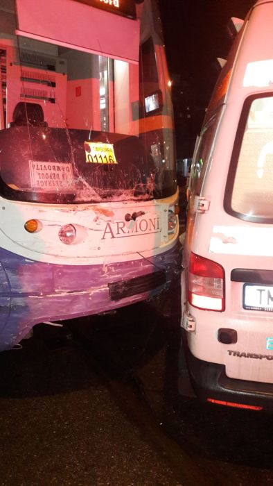 Tramvaiul, condus de o vatmanita, pornise din statie si nu a mai apucat sa franeze la timp pentru a evita impactul cu autospeciala care se indrepta in mare graba spre Maternitatea Bega.