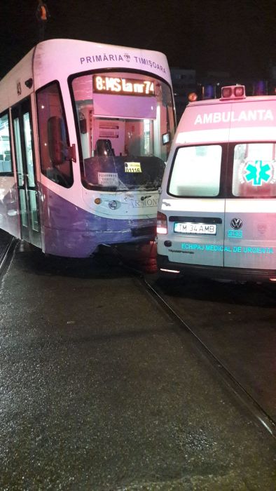 “O ambulanta condusa de un barbat de 43 de ani care circula cu semnalele acustice si luminoase in functiune pe FC Ripensia, la intersectia cu strada 1 Decembrie a trecut pe rosu si a intrat in coliziune cu un tramvai”, transmit reprezentantii IPJ Timis.