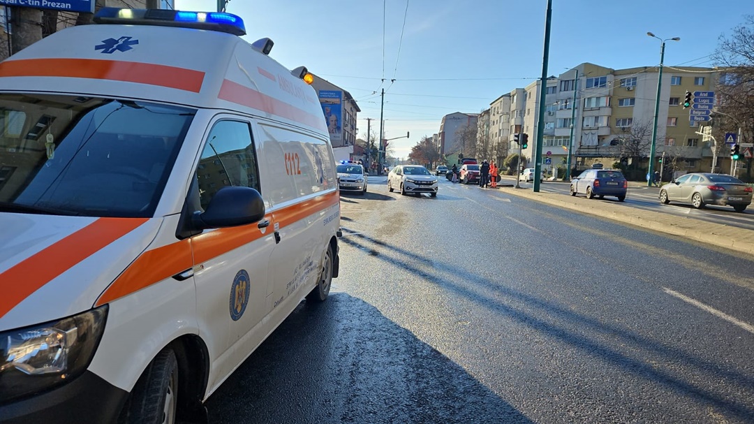 TIMISOARA. O ambulanta cu pacient si un autoturism s-au ciocnit duminica dimineata inbtr-o intersectie din Timisoara.