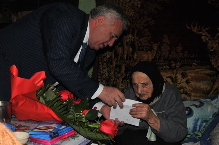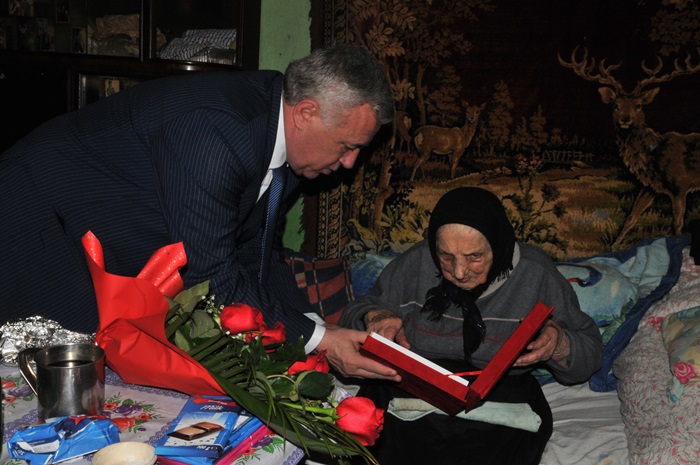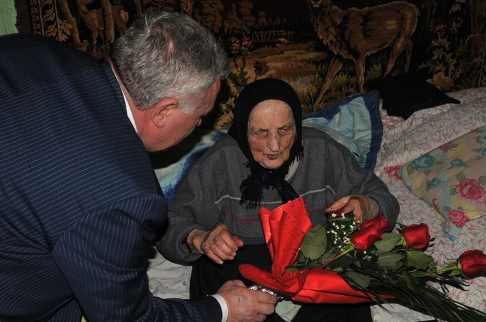 Bojin i-a oferit femeii o diploma de longevitate, flori, un cadou in bani si o icoana.