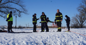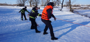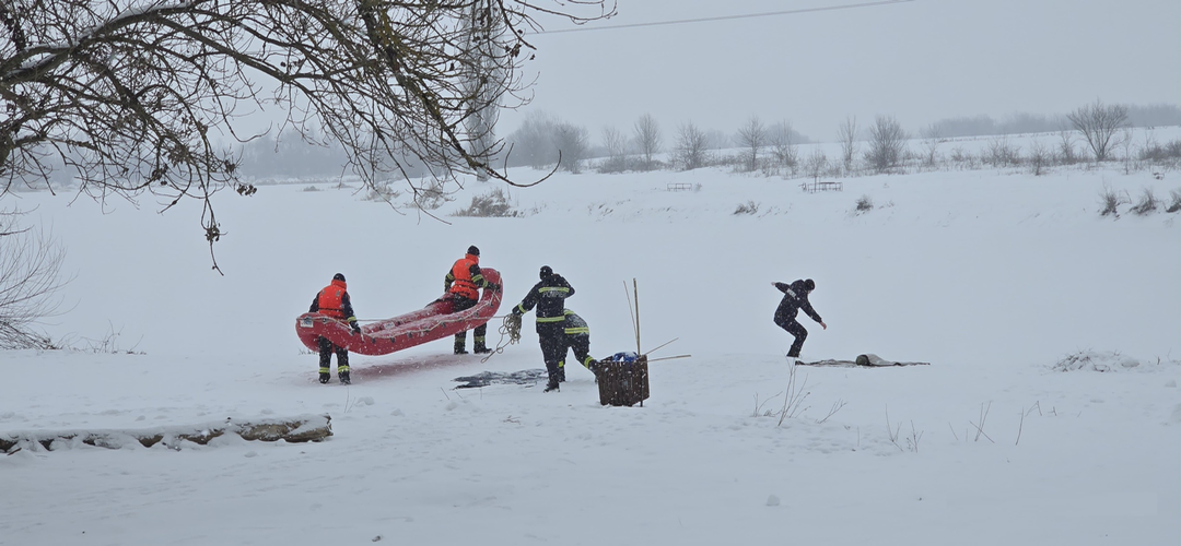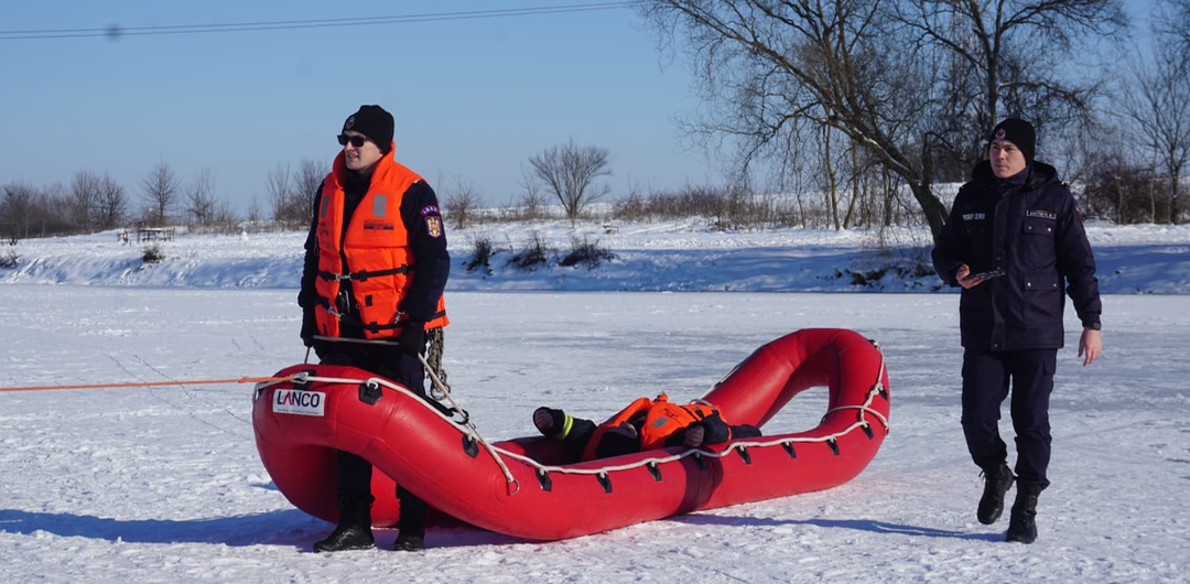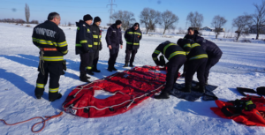 Salvatorii din cele 7 subunități au ieșit cu bărci speciale pe apele înghețate pentru a exersa modalitățile de intervenție în cazul în care o persoană ajunge pe un râu sau lac, gheața se crapă și are nevoie de ajutor.