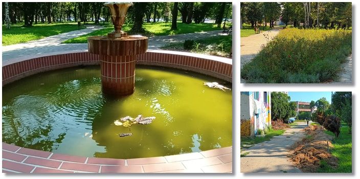 TIMISOARA. La doar cateva zile distanta de momentul receptiei, Parcul Civic din Timisoara se scalda in balarii si mizerie, desi cosurile de gunoi sunt montate pe unele alei chiar si aproape din metru in metru. Apa din fantana ornamentala e murdara si plina de resturi vegetale.