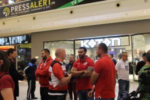 TIMISOARA. Campioanele Romaniei si Scotiei se intalnesc sambata in primul meci din grupele Challenge Cup la rugby. Inaintea partidei, reprezentantii celor doua echipe au participat la o conferinta de presa comuna intr-un mall din Timisoara, insa au avut parte si de o surpriza.