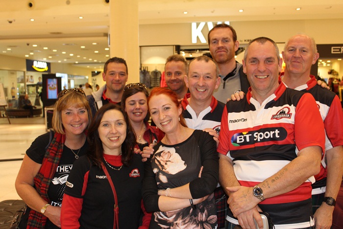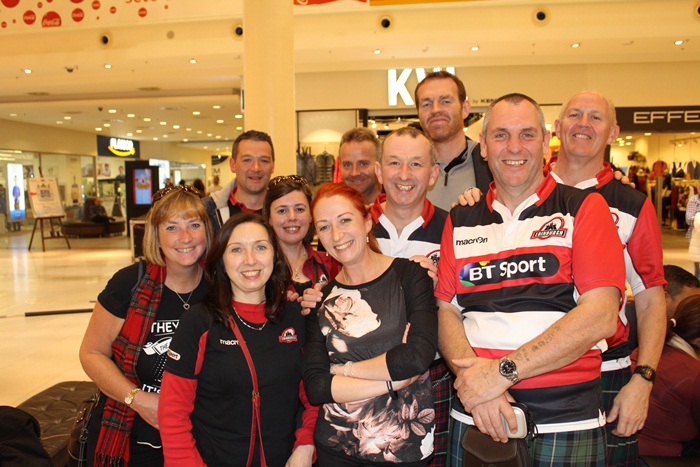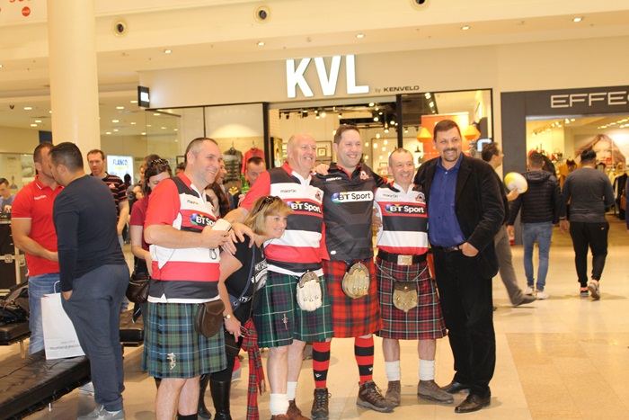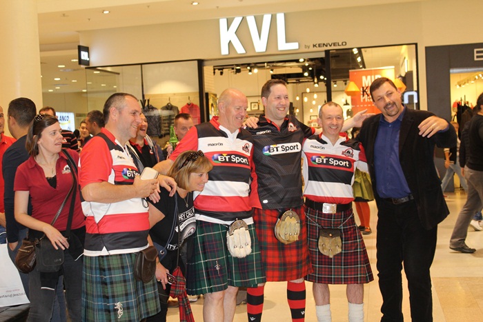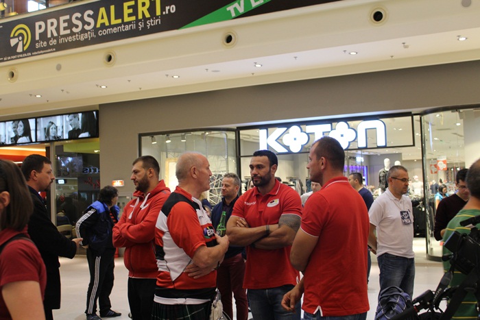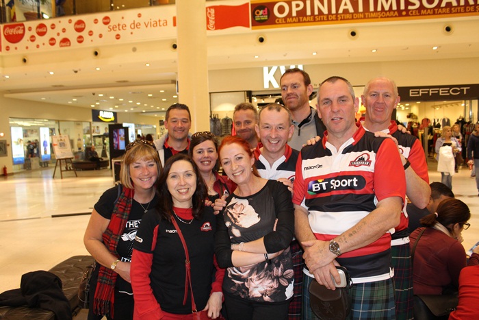 Pe langa iubitorii rugby-ului din Timisoara, care au luat loc pe scaune sa ii asculte pe reprezentantii Timisoara Saracens si Edinburgh Rugby, in mall a aparut si un grup de suporteri scotieni. Surpriza a fost ca nu au aparut cu fulare sau vuvuzele sa faca galagie, ci au venit echipati in tricourile lui Edinburgh, cu berea in mana si traditionalele…. kilturi.