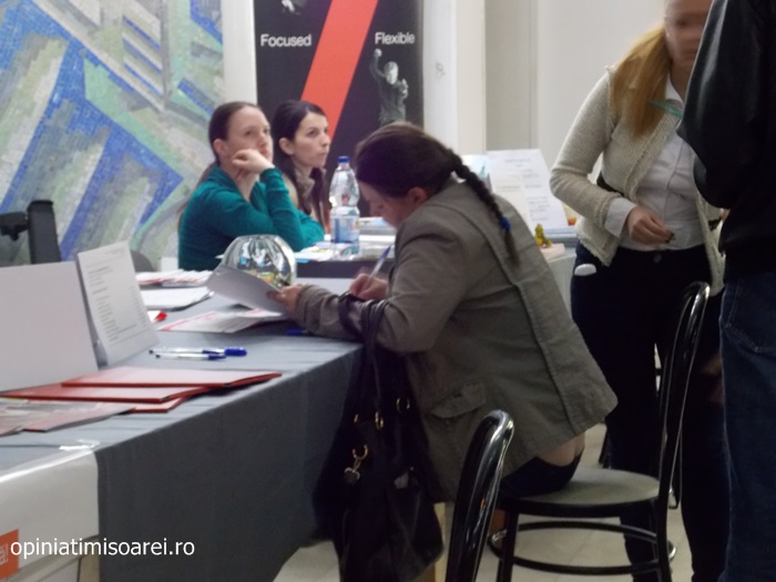Sute de timisoreni au luat cu asalt Casa Tineretului din Timisoara, acolo unde s-a desfasurat evenimentul. Cei interesati de gasirea unui loc de munca au putut sa ceara, direct de la angajatorii veniti de la diferite firme din Timisoara, detalii cu privire la joburile disponibile, iar cei mai multi au lasat si un CV in speranta ca vor fi contactati pentru un interviu.