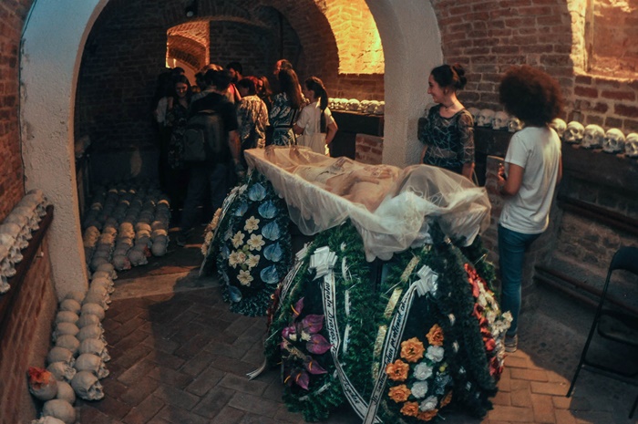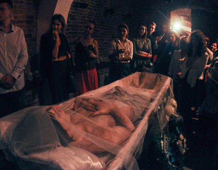 Fiecare lucrare invita la introspectie. Un nor gigantic intr-o cusca pune in discutie sistemul. Copacii – tornada atrag atentia asupra consumerismului si propun reciclarea alternativa. Sunt cinci, si mai inalti decat un stat de om. Unul din artisti sondeaza in propria trecere in nefiinta, si isi prezinta… inmormantarea, alaturi de o alta lucrare care insumeaza aproximativ 1.000 de cranii. Cine a invins frica de moarte, a invins viata. Un altul e gata sa-si bea sangele, intr-un demers atipic de autocunoastere.