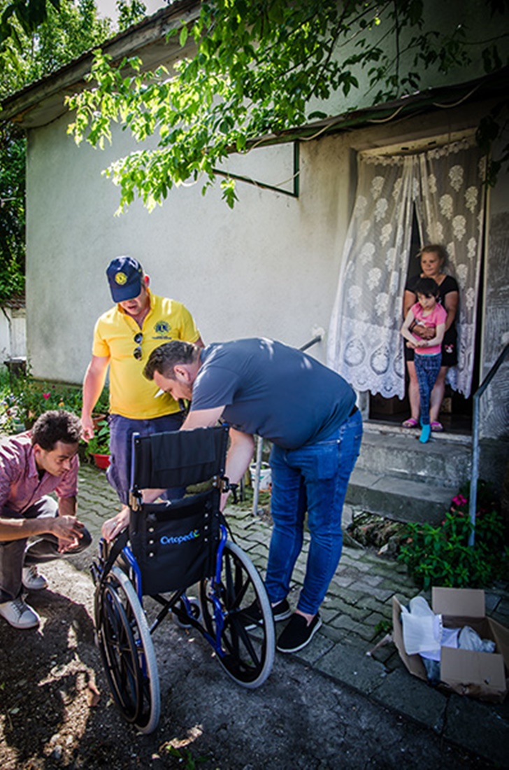 Pe lângă cadourile tradiționale, anul acesta leii au donat și un cărucior cu rotile, multipozabil, pentru o tânără paralizată.