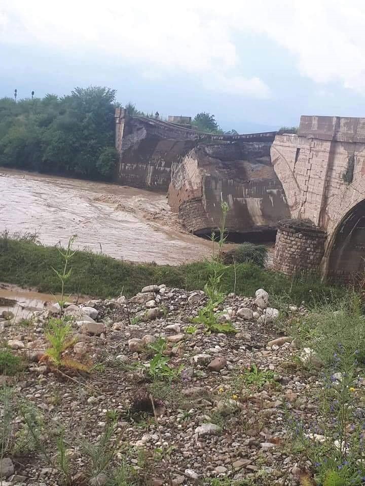 Un pod de cale ferata din localitatea Budila, judetul Brasov s-a prabusit in urma unei viituri puternice.