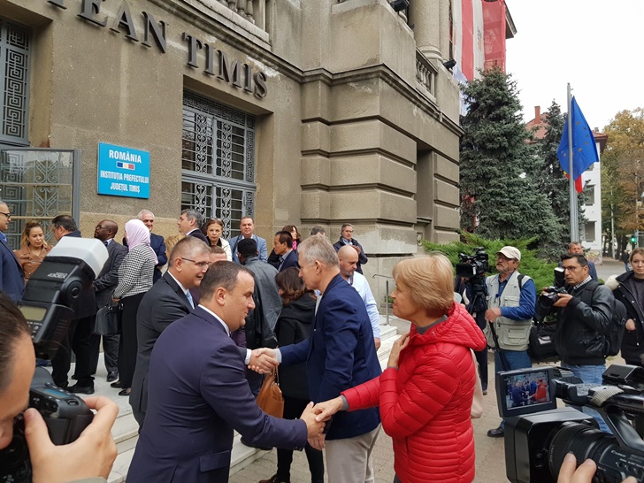 Reprezentantii misiunilor diplomatice din intreaga lume au fost intampinati duminica dimineata, la Consiliul Judetean Timis, de reprezentantii institutiei, dar si de membri ai Prefecturii Timis, Primariei Timisora, ai Camerei de Comert, Industrie si Agricultura Timis, mediului de afaceri si ai autoritatilor publice.