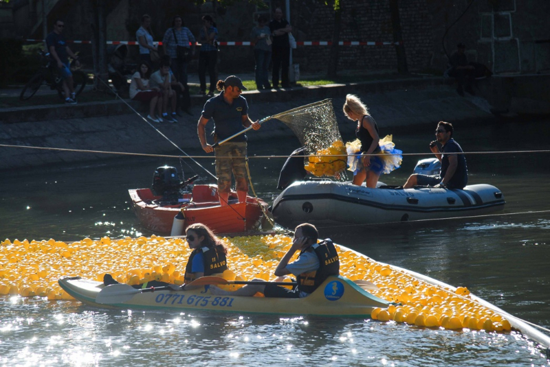 Traditionala cursa a ratustelor de la Festivalul Bega Bulevard este o actiune caritabila. Din banii adunati din vanzarea jucariilor, anul acesta se va amenaja un spatiu de pregatire cu simulator pentru angajatii Inspectoratului pentru Situatii de Urgenta Banat si pentru formarea paramedicilor SMURD.