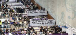 Handbaliștii au fost susținuți din tribune și de galeria Politehnicii, care a făcut spectacol, ca de obicei. Suporterii au afișat și 3 bannere, cu mesaje pentru antrenorul George Buricea, cel care este suspendat.