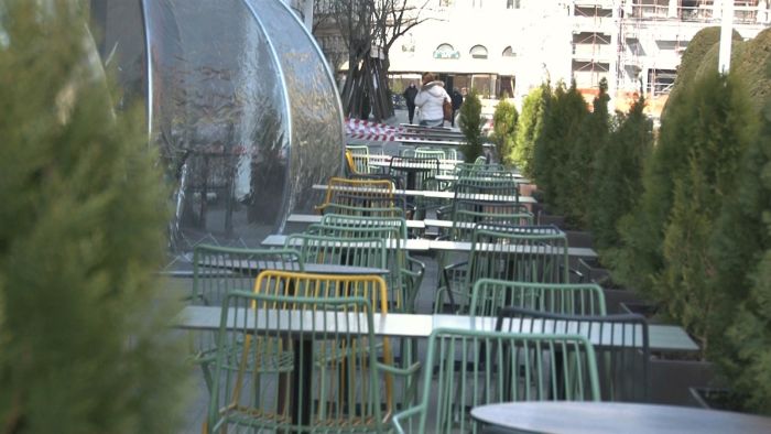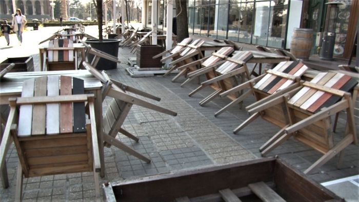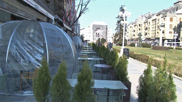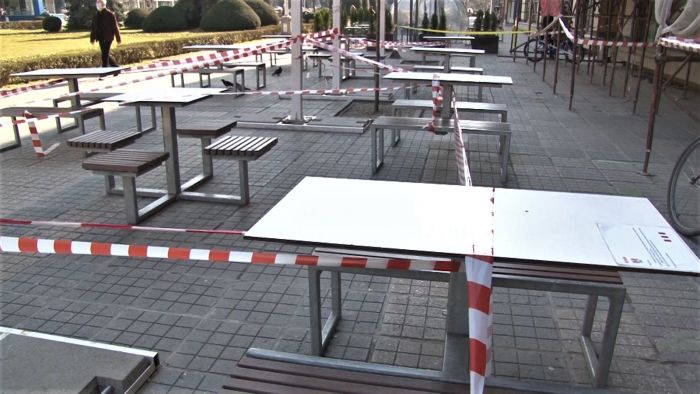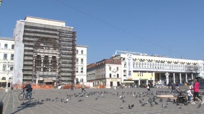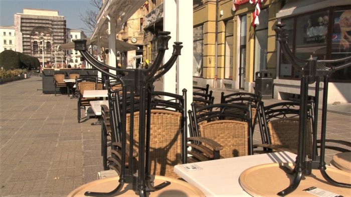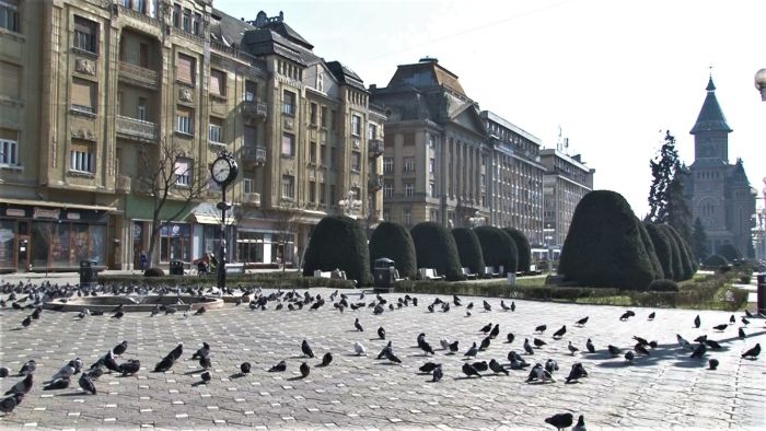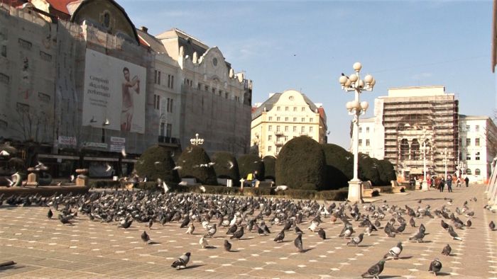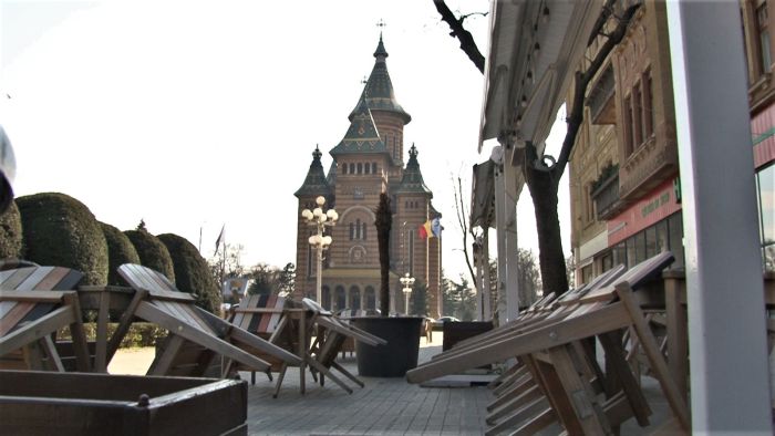 Si terasele din centru sunt pustii, chiar daca soarele isi trimite razele calde. Porumbeii sunt singurii care au pus stapanire pe centrul orasului.
