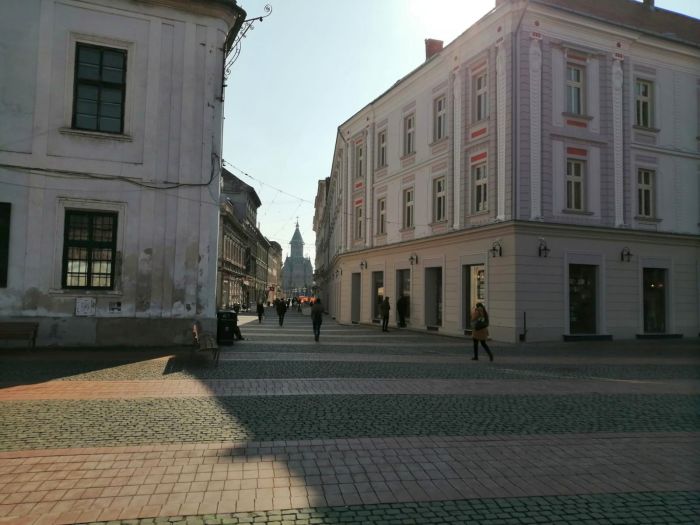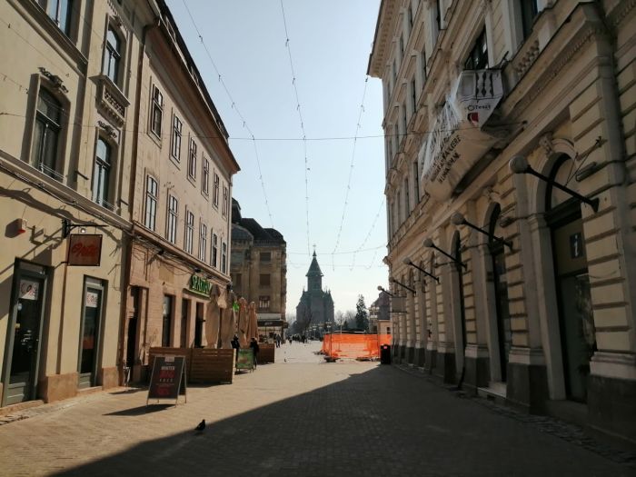 TIMISOARA. Strazile din zona centrala a Timisoarei sunt aproape pustii, in prima zi de carantina. Foarte putini oameni au trecut in graba pe strazi, iar majoritatea purta masca de protectie.
