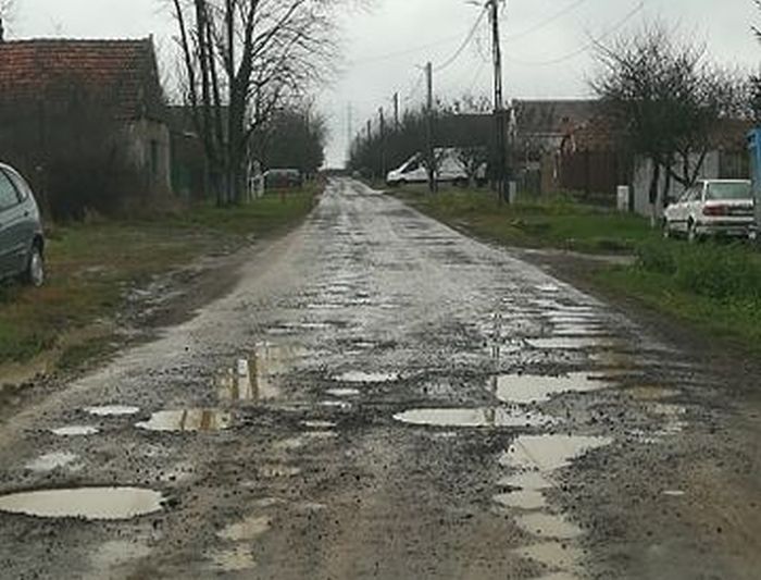 Groapa langa groapa, dintr-o margine in cealalta. Asa arata un drum la inceput de an 2021, langa Timisoara.