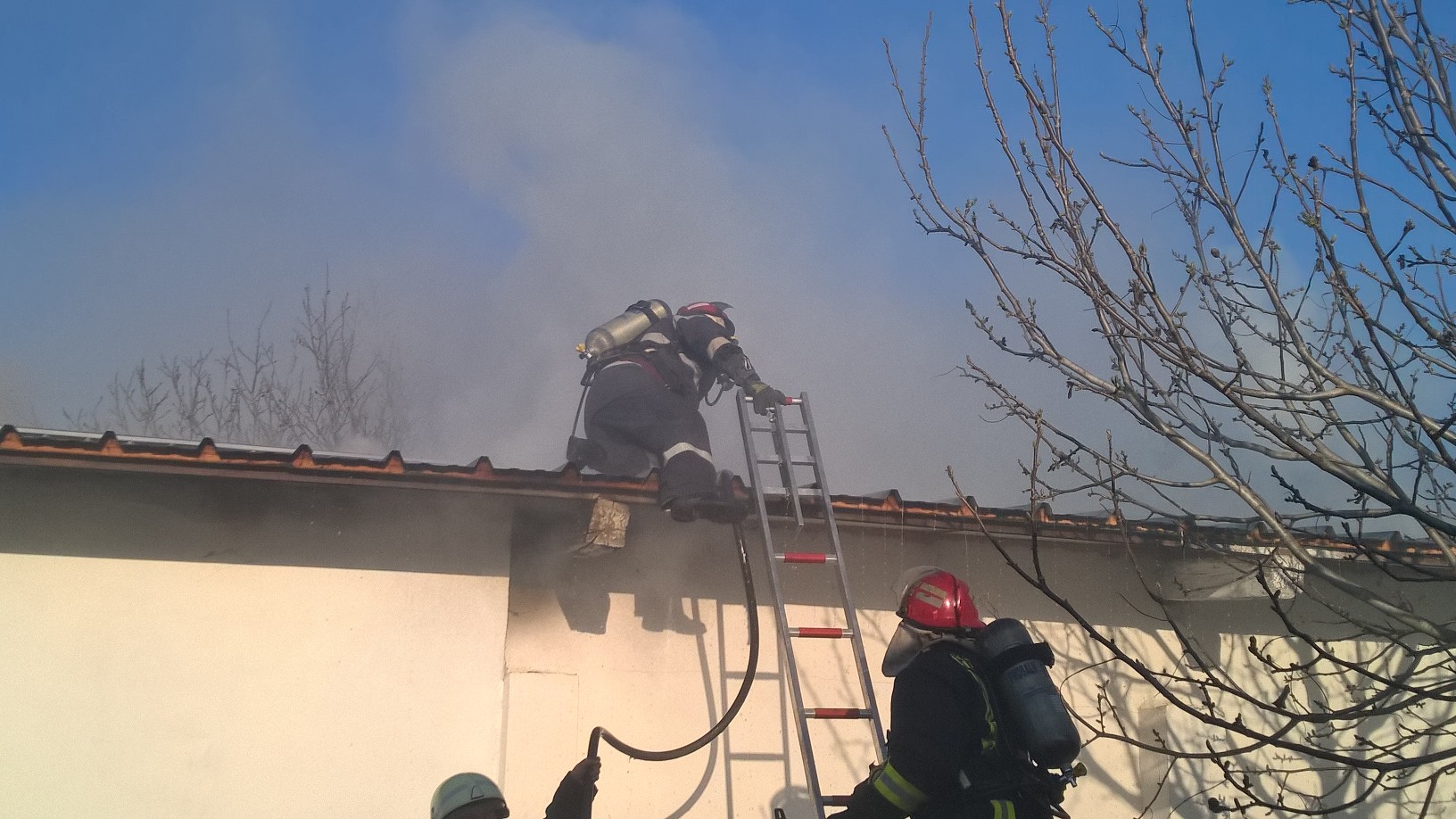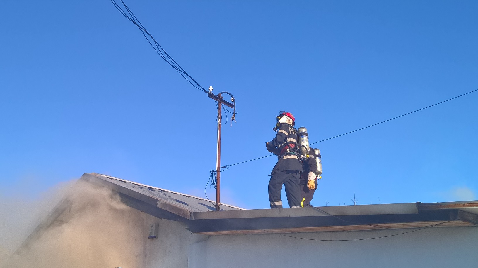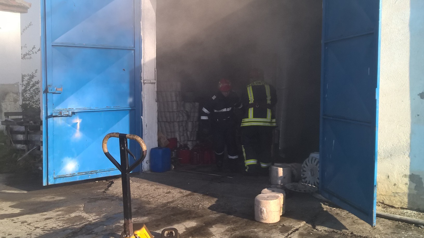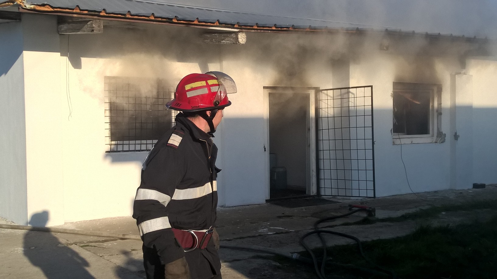 UPDATE: Pompierii au reusit sa stinga focul cu ajutorul a trei autospeciale cu apa si spuma. Ei au intampinat probleme mai mari la stingerea acoperisului, mai precis a izolatiei termice din spuma poliuretanica. O buna parte din materialele depozitate – sanitare, hartie igienica, detergenti, etc. – au fost recuperate.