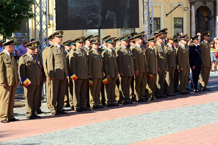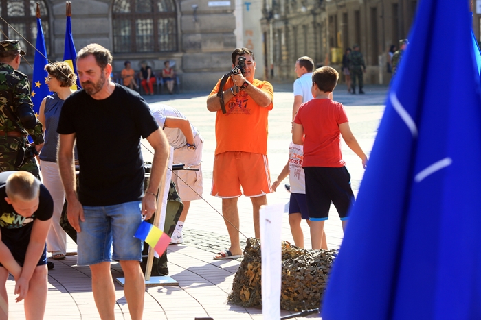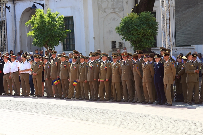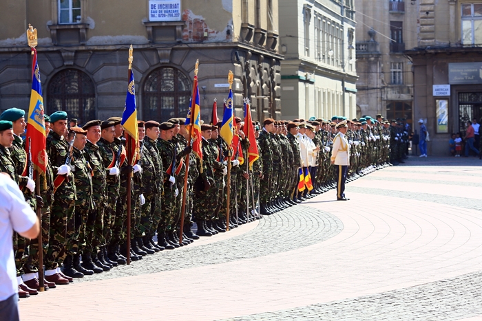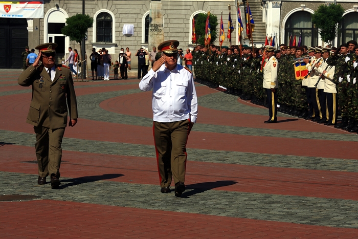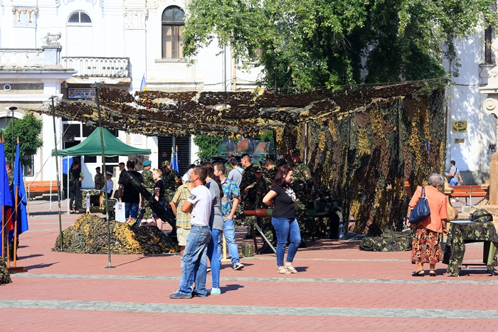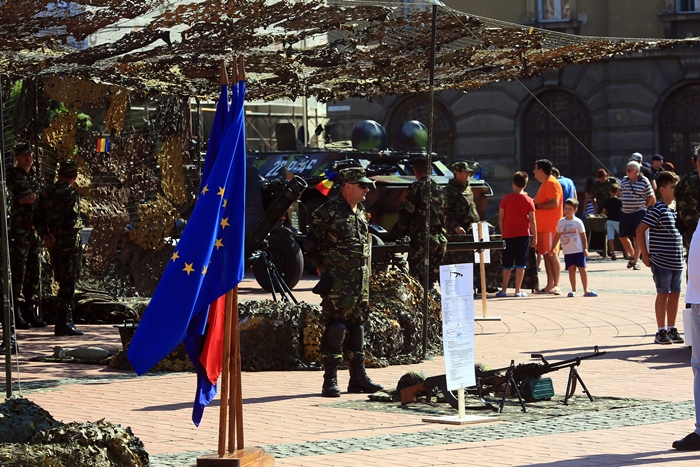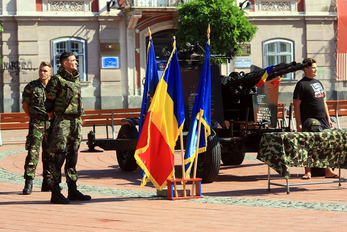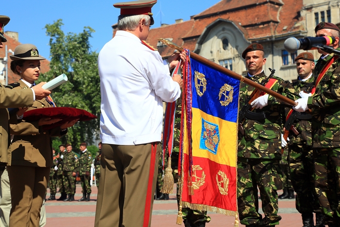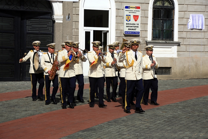 Astfel, in sunet de fanfara, cu mic cu mare, timisorenii care au venit in Piata Libertatii au asistat vineri dimineata la ceremonia de decorare a Drapelului de lupta al unitatii si la exercitii de tip Drill Team de manuire a armamentului. De asemenea, vor putea vizita Sala Traditiilor Militare ale Brigazii 18 Infanterie Banat.