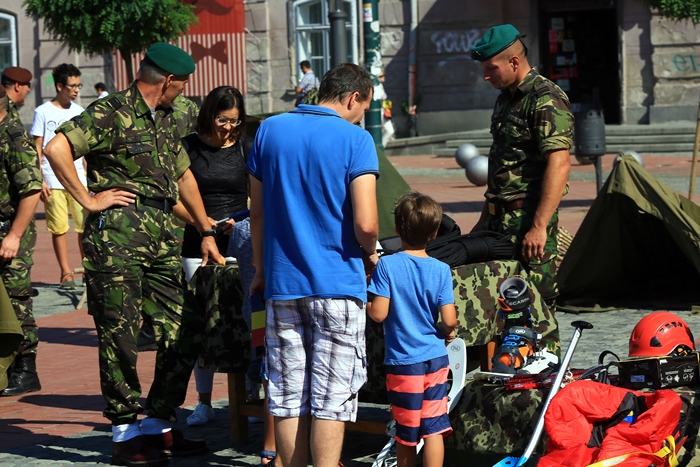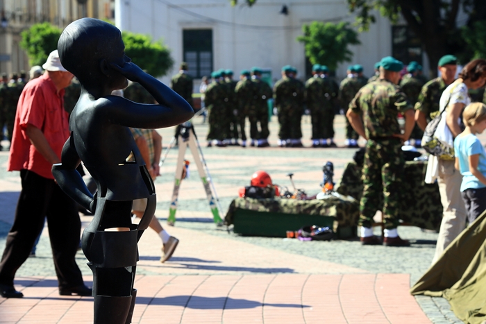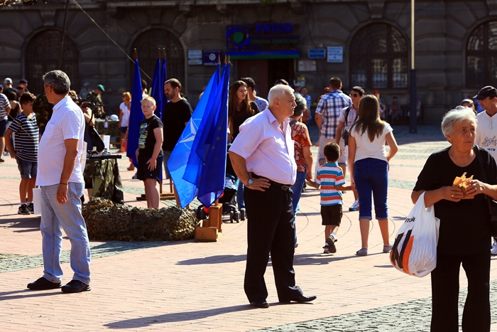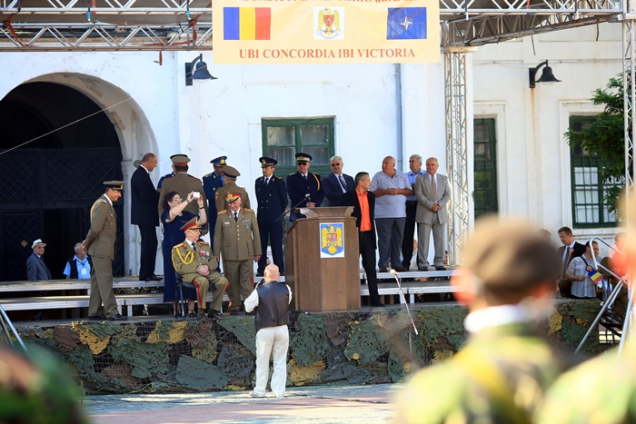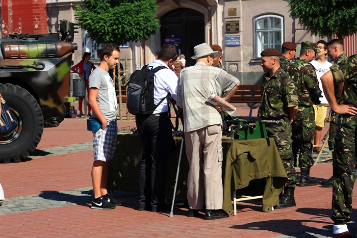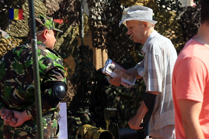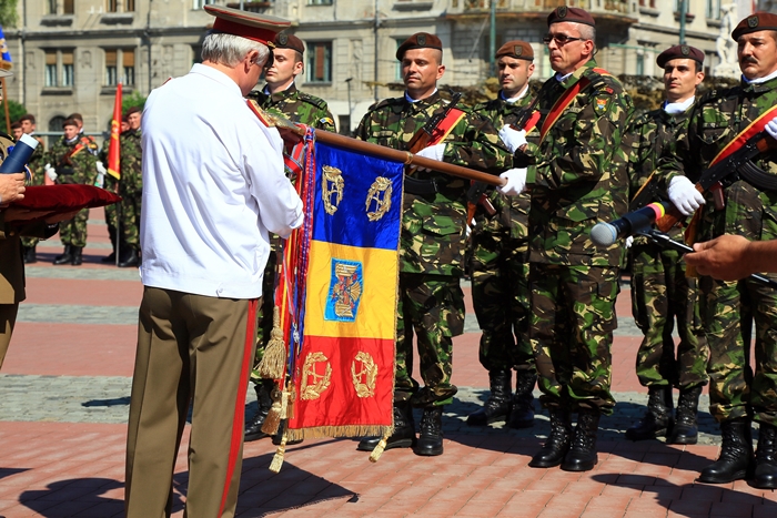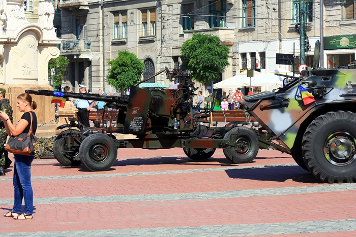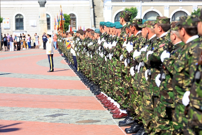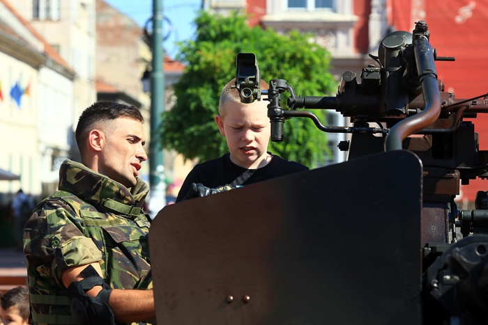Astfel, in sunet de fanfara, cu mic cu mare, timisorenii care au venit in Piata Libertatii au asistat vineri dimineata la ceremonia de decorare a Drapelului de lupta al unitatii si la exercitii de tip Drill Team de manuire a armamentului. De asemenea, vor putea vizita Sala Traditiilor Militare ale Brigazii 18 Infanterie Banat.