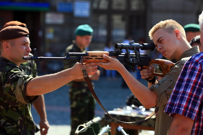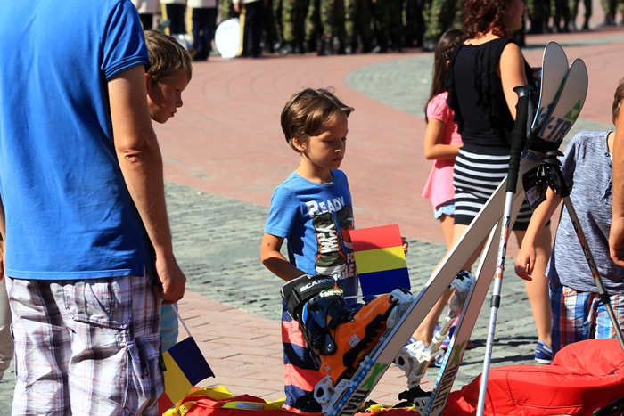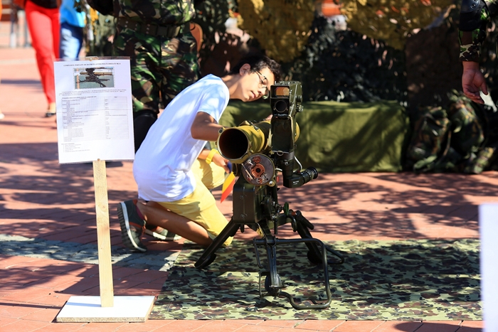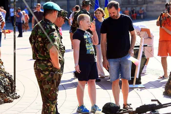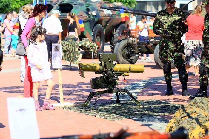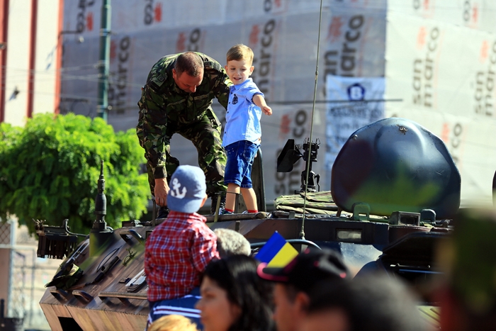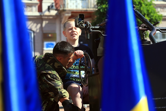 Copiii au fost incantati sa-i vada pe militari si tehnica lor de lupta, sa se apropie de armele lor si sa-si faca poze.