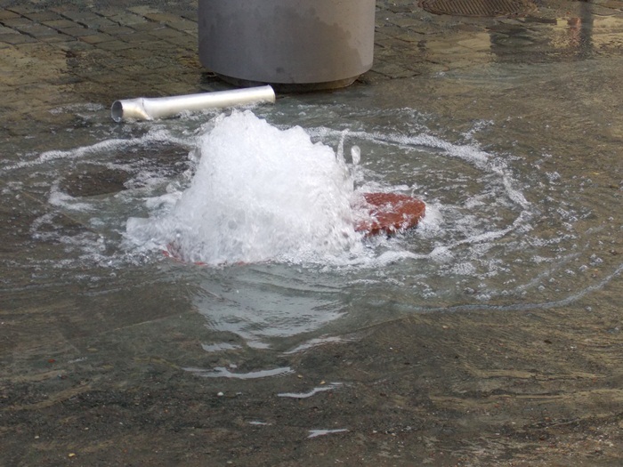 In momentul in care apa a tasnit, jetul a ajuns pana la ultimul etaj.