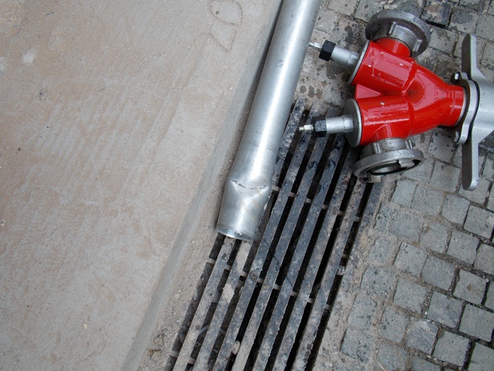 O echipa de interventie a Aquatim a ajuns rapid in zona si a oprit apa care ducea la hidrant, iar muncitorii de la santierul de pe Savoya s-au gandit sa dea si ei o mana de ajutor. Odata de jetul de apa s-a domolit, acestia si-au spus ca ar putea ei sa remonteze robinetul de la hidrant, insa mai intai trebuia scoasa apa din camin.