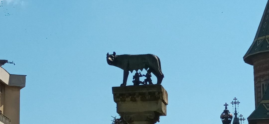 Copie a celebrei Lupa Capitolina, monumentul a fost instalat in centrul orasului in 23 aprilie 1926, pe un soclu de 4,49 de metri.