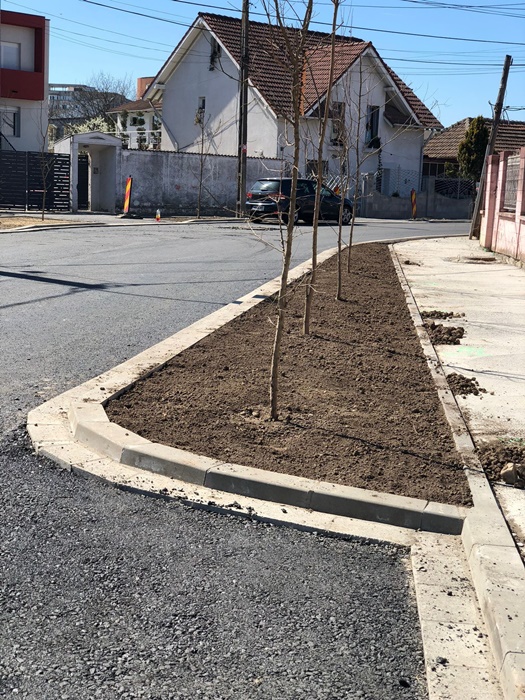 Au fost delimitate mai multe locuri de parcare si au fost amenajate si spatii verzi in fasiile de pamant incadrate de borduri si trotuar, unde s-au plantat copaci. Au fost realizate accese catre proprietati si montate rigole.