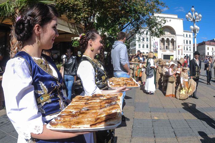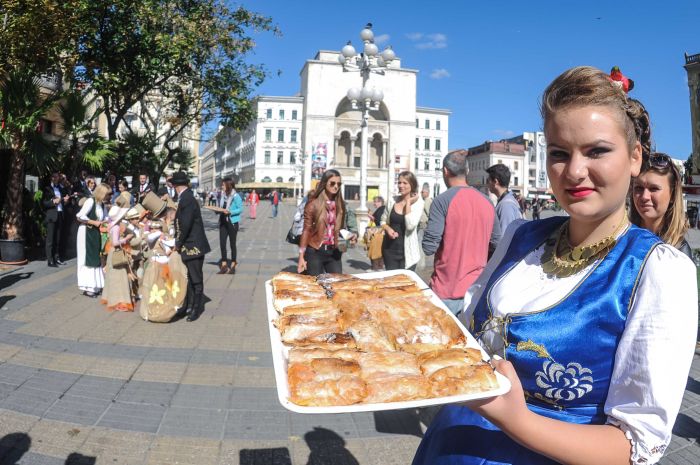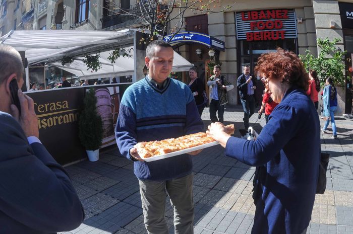 Au dansat si s-au fotografiat cu trecatorii si chiar i-au servit cu placinte delicioase.
