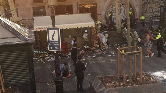 Atacul a avut loc in zona Las Ramblas, o strada de tarabe si magazine care traverseaza centrul Barcelonei. O furgoneta condusa de un individ a intrat in multimea care se plimba prin aceasta zona, a parcurs 600 de metri pe artera pietonala, dupa care s-a oprit intr-un chiosc. Din cate se pare soferul a coborat din masina si a intrat intr-un restaurant , iar din informatiile oferite de politie se pare ca ar fi inarmat.